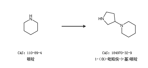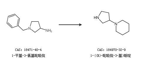 1.通过1-苄基-3-氨基吡咯烷合成1-((R)-吡咯烷-3-基)哌啶