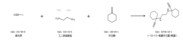 1.通过氰化钾、乙二胺盐酸盐和环己酮合成1-({2-[(1-氰基环己基)氨基]乙基}氨基)环己烷甲腈