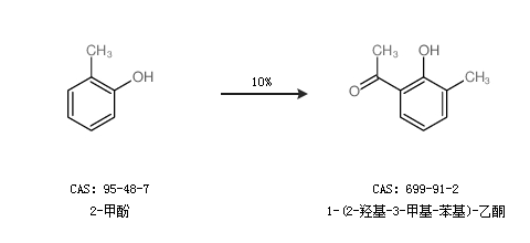 1.通过2-甲酚合成1-(2-羟基-3-甲基-苯基)-乙酮,收率约96%;