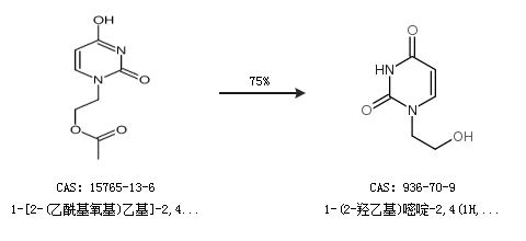 2.通过1-[2-(乙酰基氧基)乙基]-2,4(1H,3H)-嘧啶二酮合成1-(2-羟乙基)嘧啶-2,4(1H,3H)-酮,收率约75%;