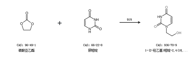 1.通过碳酸亚乙酯和尿嘧啶合成1-(2-羟乙基)嘧啶-2,4(1H,3H)-酮,收率约91%;