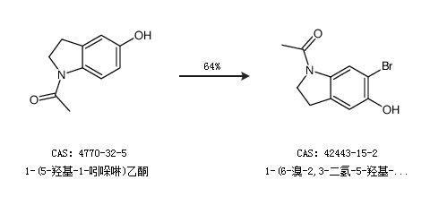 1.通过1-(5-羟基-1-吲哚啉)乙酮合成1-(6-溴-2,3-二氢-5-羟基-1H-吲哚-1-基)乙酮,收率约64%;
