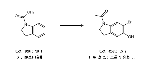 2.通过N-乙酰基吲哚啉合成1-(6-溴-2,3-二氢-5-羟基-1H-吲哚-1-基)乙酮