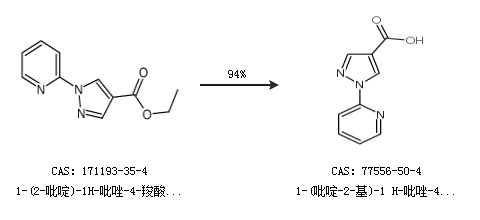 1.通过1-(2-吡啶)-1H-吡唑-4-羧酸乙酯合成1-(吡啶-2-基)-1 H-吡唑-4-甲酸,收率约94%;