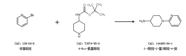 1.通过邻溴吡啶和4-Boc-氨基哌啶合成1-(吡啶-2-基)哌啶-4-胺