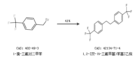 1.通过1-溴-三氟对二甲苯合成1,2-[双-(4-三氟甲基)苯基]乙烷,收率约41%;