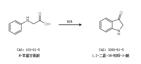 1.通过N-苯基甘氨酸合成1,2-二氢-3H-吲哚-3-酮,收率约92%;