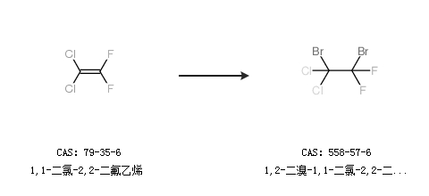 1.通过1,1-二氯-2,2-二氟乙烯合成1,2-二溴-1,1-二氯-2,2-二氟乙烷,收率约93%;