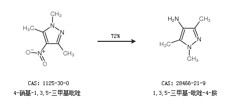 1.通过4-硝基-1,3,5-三甲基吡唑合成1,3,5-三甲基-吡唑-4-胺,收率约72%;