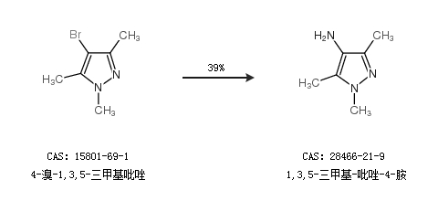 2.通过4-溴-1,3,5-三甲基吡唑合成1,3,5-三甲基-吡唑-4-胺,收率约39%;