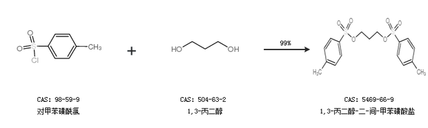 2.通过对甲苯磺酰氯和1,3-丙二醇合成1,3-丙二醇-二-间-甲苯磺酸盐,收率约99%;