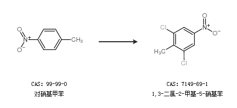 2.通过对硝基甲苯合成1,3-二氯-2-甲基-5-硝基苯
