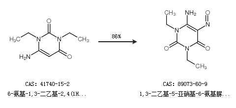 1.通过6-氨基-1,3-二乙基-2,4(1H,3H)-嘧啶二酮合成1,3-二乙基-5-亚硝基-6-氨基脲嘧啶,收率约86%;