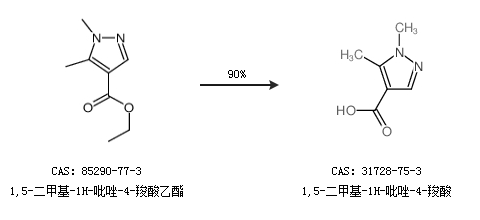 1.通过1,5-二甲基-1H-吡唑-4-羧酸乙酯合成1,5-二甲基-1H-吡唑-4-羧酸,收率约90%;