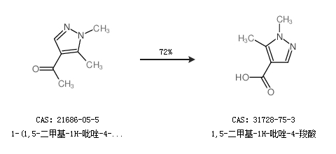 2.通过1-(1,5-二甲基-1H-吡唑-4-基)乙酮合成1,5-二甲基-1H-吡唑-4-羧酸,收率约72%;