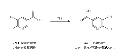 1.通过6-碘-5-羟基烟酸合成1,6-二氢-5-羟基-6-氧代-3-吡啶羧酸,收率约77%;