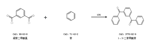 1.通过间苯二甲酰氯和苯合成1、3-二苯甲酰苯,收率约10%;