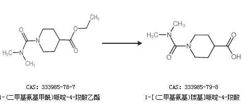 1.通过1-(二甲基氨基甲酰)哌啶-4-羧酸乙酯合成1-[(二甲基氨基)羰基]哌啶-4-羧酸,收率约42%;