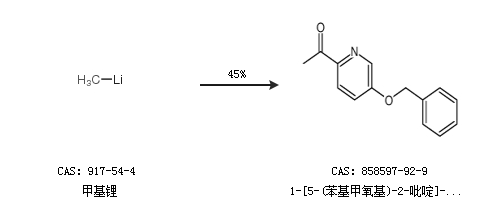 1.通过甲基锂合成1-[5-(苯基甲氧基)-2-吡啶]-乙酮,收率约45%;