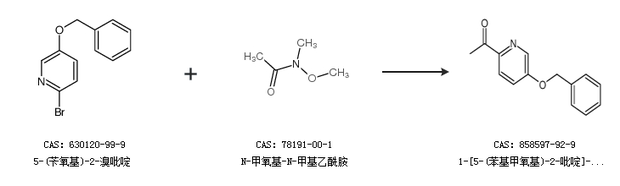 2.通过5-(苄氧基)-2-溴吡啶和N-甲氧基-N-甲基乙酰胺合成1-[5-(苯基甲氧基)-2-吡啶]-乙酮