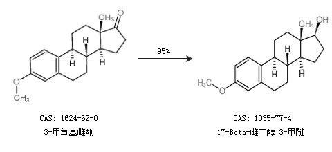1.通过3-甲氧基雌酮合成17-Beta-雌二醇 3-甲醚,收率约95%;