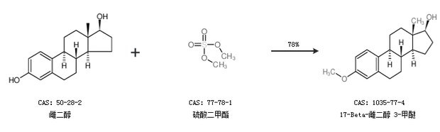 2.通过雌二醇和硫酸二甲酯合成17-Beta-雌二醇 3-甲醚,收率约78%;