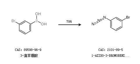 2.通过3-溴苯硼酸合成1-AZIDO-3-BROMOBENZENE SOLUTION,收率约79%;