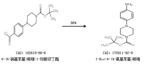 1.通过4-(4-硝基苯基)哌嗪-1-羧酸叔丁酯合成1-Boc-4-(4-氨基苯基)哌嗪,收率约98%;
