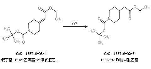 1.通过叔丁基 4-(2-乙氧基-2-氧代亚乙基)哌啶-1-羧酸合成1-Boc-4-哌啶甲酸乙酯,收率约99%;