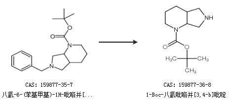 1.通过八氢-6-(苯基甲基)-1H-吡咯并[3,4-b]吡啶-1-羧酸 1,1-二甲基乙酯合成1-Boc-八氢吡咯并[3,4-b]吡啶