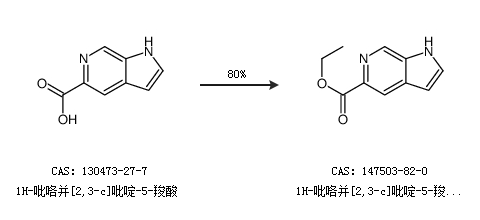 1.通过1H-吡咯并[2,3-c]吡啶-5-羧酸合成1H-吡咯并[2,3-c]吡啶-5-羧酸乙酯,收率约80%;