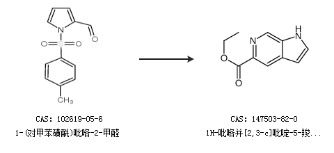 2.通过1-(对甲苯磺酰)吡咯-2-甲醛合成1H-吡咯并[2,3-c]吡啶-5-羧酸乙酯