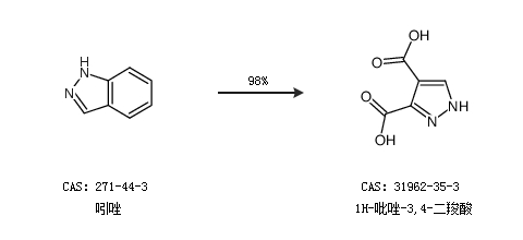1.通过吲唑合成1H-吡唑-3,4-二羧酸,收率约98%;