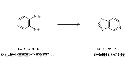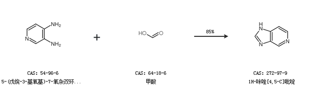 1.通过5-(戊烷-3-基氧基)-7-氧杂双环(4.1.0)庚-3-烯-3-羧酸乙酯和甲酸合成1H-咪唑[4,5-C]吡啶,收率约85%;