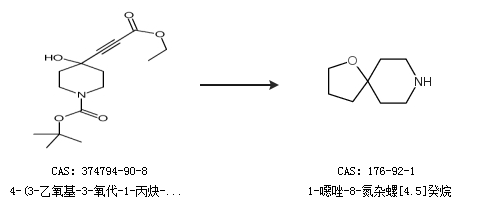 2.通过4-(3-乙氧基-3-氧代-1-丙炔-1-基)-4-羟基-1-哌啶羧酸 1,1-二甲基乙酯合成1-噁唑-8-氮杂螺[4.5]癸烷