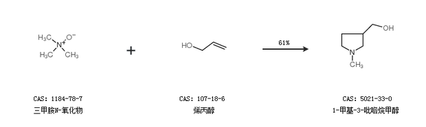 1.通过三甲胺N-氧化物和烯丙醇合成1-甲基-3-吡咯烷甲醇,收率约61%;