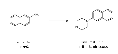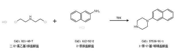 2.通过二(2-氯乙基)胺盐酸盐和2-萘胺盐酸盐合成1-萘-2-基-哌嗪盐酸盐,收率约76%;