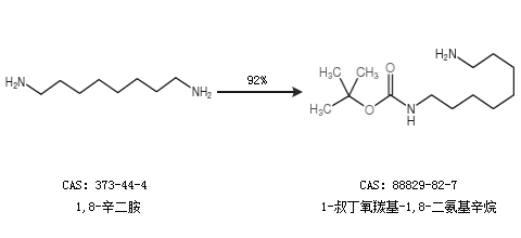 1.通过1,8-辛二胺合成1-叔丁氧羰基-1,8-二氨基辛烷,收率约92%;