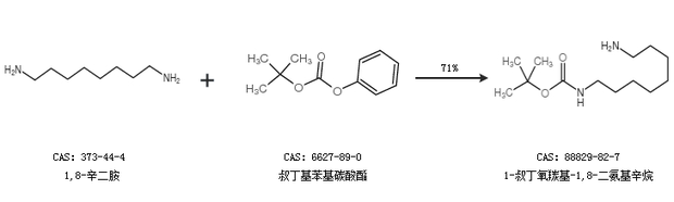 2.通过1,8-辛二胺和叔丁基苯基碳酸酯合成1-叔丁氧羰基-1,8-二氨基辛烷,收率约71%;