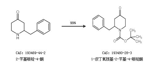1.通过2-苄基哌啶-4-酮合成1-叔丁氧羰基-2-苄基-4-哌啶酮,收率约99%;