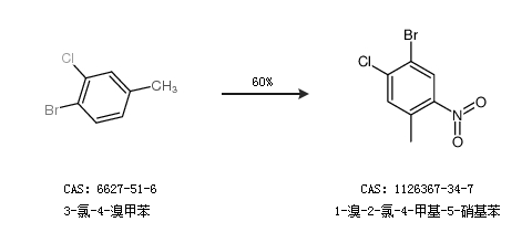 1.通过3-氯-4-溴甲苯合成1-溴-2-氯-4-甲基-5-硝基苯,收率约60%;