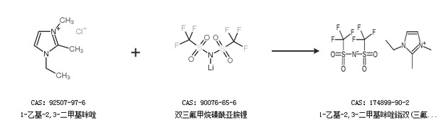 1.通过1-乙基-2,3-二甲基咪唑和双三氟甲烷磺酰亚胺锂合成1-乙基-2,3-二甲基咪唑鎓双(三氟甲磺酰)亚胺