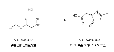 1.通过肼基乙酸乙酯盐酸盐合成2-(3-甲基-5-氧代-4,5-二氢-1H-吡唑-1-基)乙酸