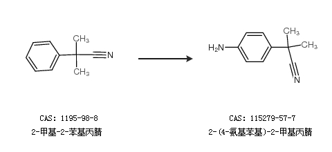 2.通过2-甲基-2-苯基丙腈合成2-(4-氨基苯基)-2-甲基丙腈