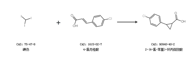 1.通过碘仿和4-氯肉桂酸合成2-(4-氯-苯基)-环丙烷羧酸