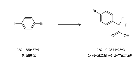 1.通过对溴碘苯合成2-(4-溴苯基)-2,2-二氟乙酸