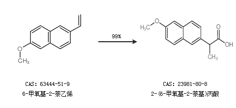 1.通过6-甲氧基-2-萘乙烯合成2-(6-甲氧基-2-萘基)丙酸,收率约99%;