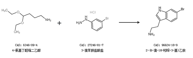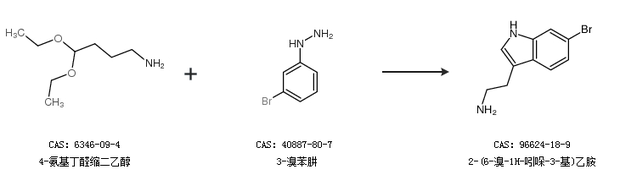 1.通过4-氨基丁醛缩二乙醇和3-溴苯肼合成2-(6-溴-1H-吲哚-3-基)乙胺