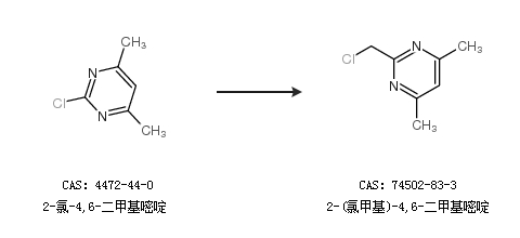 2.通过2-氯-4,6-二甲基嘧啶合成2-(氯甲基)-4,6-二甲基嘧啶
