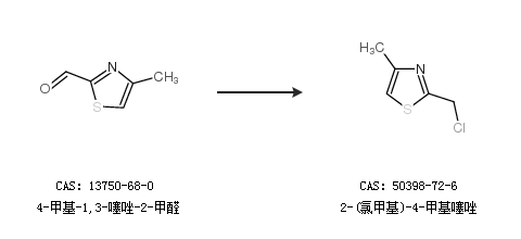 2.通过4-甲基-1,3-噻唑-2-甲醛合成2-(氯甲基)-4-甲基噻唑